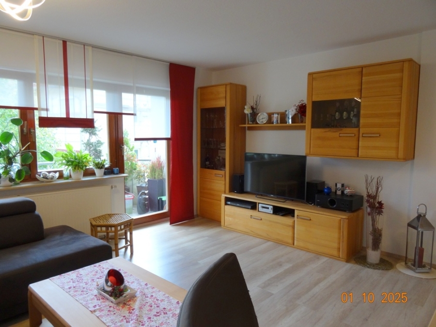Vom Wohnzimmer aus haben Sie Zugang auf den schönen Süd-Balkon, wo Sie Ihren Feierabend genießen können.